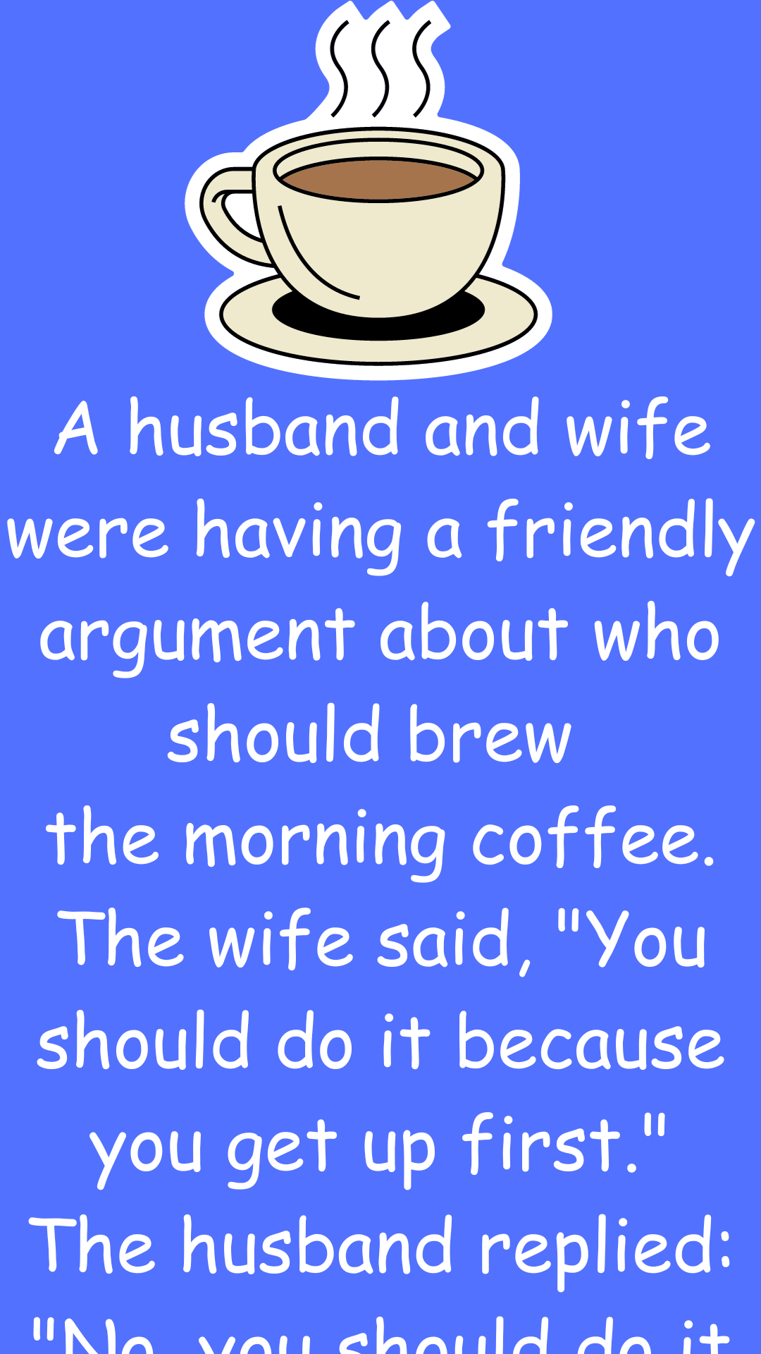 A husband and wife were having a friendly argument about who should brew the morning coffee. The wife said, “You should do it because you...