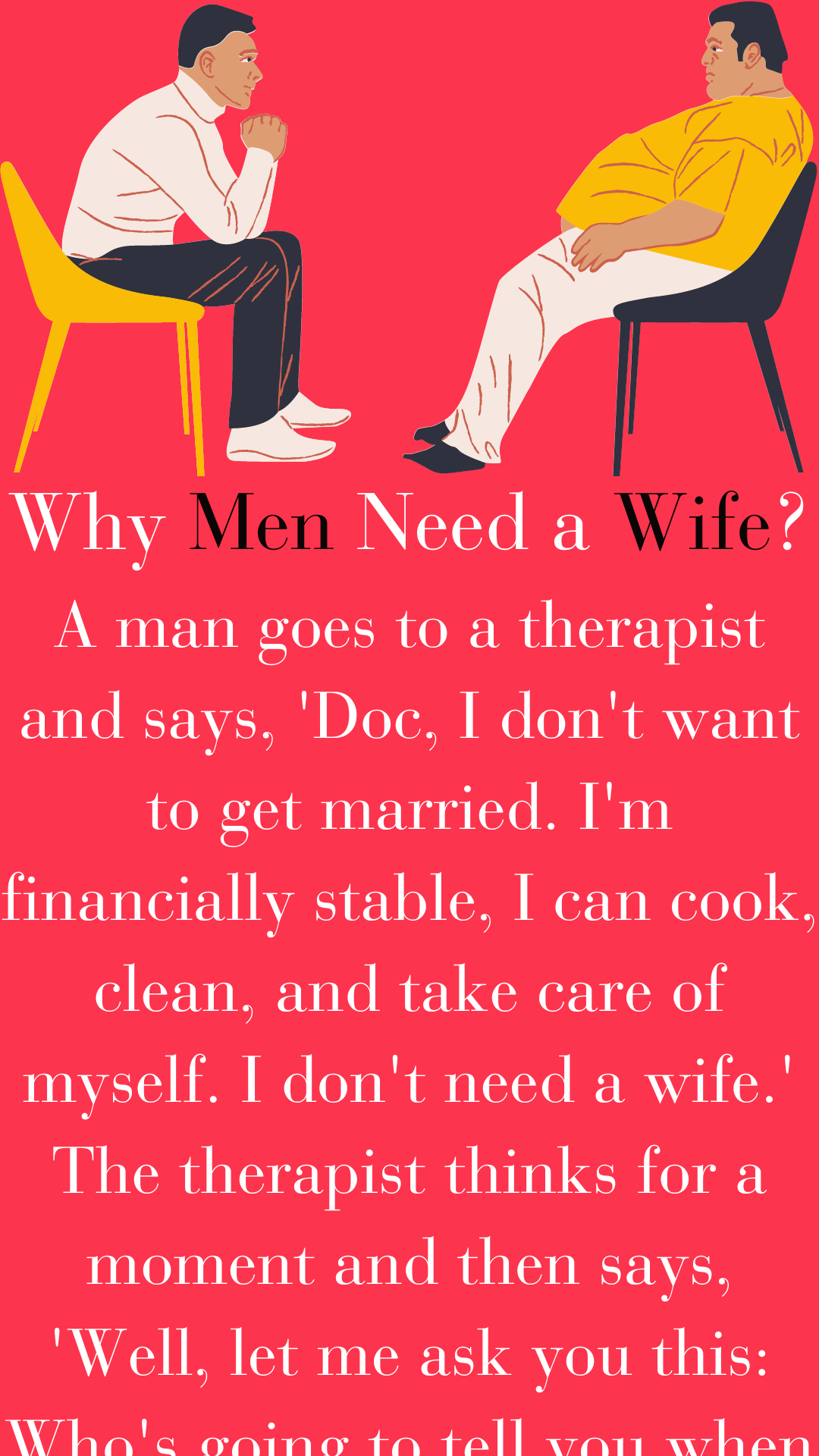 Why Men Need a Wife? A man goes to a therapist and says, ‘Doc, I don’t want to get married. I’m financially stable, I can...